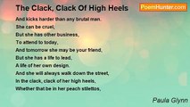 This is what life as a woman is about: <br />Lipstick, dresses and heels, <br />For city nights and days, <br />Are about style and glamour, <br />Perfume and arched eyebrows, <br />Heavy eyeliner and powder, <br />That scream high fashion, <br />Whether New York, Tokyo or London, <br />People dress up to the nines, <br />Night workers - whether sex or dishes - <br />Work for a living, while others, <br />Work nine to five, <br />And people congregate in clubs, bars and pubs, <br />Drinking beer and vodka, <br />And just having a good time, <br />As the music from the stereo plays, <br />For life is short, and all those pretty ladies, <br />Wander around in lipstick, dresses and heels, <br />Celebrating their lives and the good times, <br />Leaving the stresses of life for the morning.<br /><br />Paula Glynn<br /><br />http://www.poemhunter.com/poem/lipstick-dresses-and-heels/