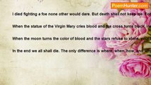 If I set the demon free <br />blood would stain the ground <br />he would kill those who get in his way <br />to oppose him would mean a painful death <br />he won't kill you quickly <br />all the bones in your body will be broken <br />he won't stop until he has the earth devote of life <br />men, women, children they will all be slaughtered <br />he takes great pleasure in what he does <br />even the creatures that inhabit hell fear him <br />he will never stop <br />the laws of man mean nothing <br />he is fueled by hatered and loathing <br />if freed nothing can save you <br />he is the demon that lives in side me<br /><br />Vasto Grom<br /><br />http://www.poemhunter.com/poem/if-i-set-the-demon-free/