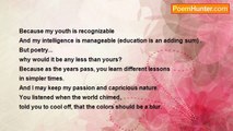 I suppose our love <br />is the universal love. <br />Your complacent gift of a red rose <br />must have been grown <br />for the sole purpose <br />of being sniffed, <br />lovingly, as eyes glowed back over the petals. <br /> <br />I understand if we part; <br />it's the typical parting. <br />Unbroken mirrors still stand, <br />more fragile than my heart, <br />for the sole purpose <br />of reflecting tears, <br />witness to my lonely bed of strong will. <br /> <br />However, I can see your visit <br />is an unending visit. <br />Your humble offering to me <br />is exhausting work <br />for the sole purpose <br />of being adored, <br />always, by the beating heart in your heart.<br /><br />Delilah Miller<br /><br />http://www.poemhunter.com/poem/boy-who-stole-my-heart/
