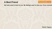 Hi, hello, how are you? <br />Will you be my friend? <br />I am cute but little naughty <br />Funny and have a smile with two dimples on my cheeks <br />My face is rather serious in look so that is why most stay away. <br />Away they prefer to stay, which maybe due to my depressions <br />Even due to my Bi-polar. <br />Just want to express, I will not hurt you <br />Yes, I may hug you if you come close to me <br />Will never cheat and even if I end up doing so <br />Yes, I will admit that I cheated on you. <br />Cannot promise to be perfect because I am very simple human <br />However, a sweet guy I am and can be very loving <br />Somehow, I have never been able to convince anyone <br />Though, I really do desire true friendship as I am very lonely <br />Will you at least give me once a chance but please remember <br />I am obsessive, truly very obsessive since I have never been loved a lot.<br /><br />Rohit Sapra<br /><br />http://www.poemhunter.com/poem/be-my-friend-3/