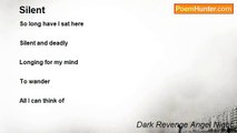 In this cold dark room <br />I sit here longing for a way out <br />Slowly, softly I look arounf <br />Not wanting to disturb <br />The horrible creature there <br />Silently I turn to the walls <br />Of my small cage <br />It looks into my eyes <br />This monster of my soul <br />To face this terror is <br />Beyond my wildest dreams <br />Screaming I run wall to <br />Wall trying simply to <br />Get away. <br /> <br />I feel a soft hand <br />On my wrist, turning <br />Me softly <br />I wake in the <br />Arms of my love <br />My love who so <br />Softly holds me <br />Close to him <br />He held me tight <br />As I screamed <br />Tonight I won't have <br />To face the monster. <br />But it will be back <br />To tear the love from <br />My soul<br /><br />Dark Revenge Angel Night<br /><br />http://www.poemhunter.com/poem/the-creature-2/
