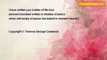 careful do not talk <br />to Terence never talk <br />to Terence careful some <br /> <br />of your words thoughts <br />might turn up in poems <br />if Terence slips in your line <br /> <br />you might casually inspire <br />a genuine instant work <br />of art randomly timeless <br /> <br />casually instant timeless<br /><br />Terence G. Craddock<br /><br />http://www.poemhunter.com/poem/never-talk-to-terence/