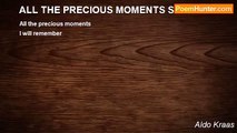 Today it is the day to remember her loved ones <br />Her dear precious loved ones <br />Her precious memories of her loved ones <br />She is sharing with me <br />And she is dedicating this poem to her loved ones <br />That went on a journey to the sky <br />Her loved ones are in heaven resting in peace <br />Every time she feels that the spirit of the Lord is <br />Moving her closer to her loved ones <br />Her loved ones shall rise to the sky <br />Her precious memories of her loved ones will live forever <br />There is a place in her heart for her loved ones <br />Her Loved ones are washed in thy blood? <br />My loved ones got to go to heaven and I had to stay behind <br />Going through the pain of loosing my dear loved ones <br />Sometimes she tells you how hard it is to let go <br />She was never ready to loose her loved ones <br />But it came one day <br />And it hit her like thunder <br />Her precious memories of her loved ones she is keeping alive <br />She can't hide what she can't feel <br />She is the only one who knows how she feels <br />She can share it with others <br />Or she can keep it silent <br />If she needs time by herself <br />So let it be <br />She may be hurt inside <br />The wounds from her loved ones have passed to her when she was Young <br />And that is where her trouble in life begun <br />Someday she will meet her loved ones in heaven <br />She had seen the light shine <br />She believes that her loved ones are in peace <br />She will live her life one day at a time <br />Her loved ones are buried in the grave yard <br />But she keeps there image alive in her dreams every night<br /><br />Aldo Kraas<br /><br />http://www.poemhunter.com/poem/her-precious-memories/