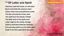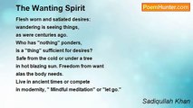 The spirit survives the timeless <br />The phenomenon of existence <br />In the self when it goes mortal <br />Since time treads its own pace <br />From the momentary to eternal <br />Life is divided into small notes <br />In chords or played individually <br />Harmony in the cosmos of things <br />History is but rendition of events <br />In the spirit enters the being <br />From non being with each soul <br />From one form to another <br />And from another to the next <br />Is that to evolve is of the form <br />When form no more remains <br />Where shall then the spirit <br />Living is the abstraction of spirit <br />Seas of spirits that continue <br />In the magnificence as it unfolds <br />For the discerning is the spirit <br />Within to the vision of flight <br />The horse with wings on distant <br />Look to how it flies beneath <br />For the beauty that is in sight <br />22/4/2009<br /><br />Sadiqullah Khan<br /><br />http://www.poemhunter.com/poem/the-spirit-10/