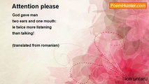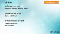 To the birth of their son <br />mother begged fate <br />to have part of a <br />long life <br />country good-looking lad <br />and to know what <br />remained unknown to her - happiness <br />father in exchange <br />wished a high, sturdy child <br />with a heart of gold <br /> <br />But the fatal sisters <br />predestinated him to suffer <br /> <br />(translated from romanian)<br /><br />ion untaru<br /><br />http://www.poemhunter.com/poem/about-pre-destination/