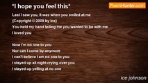 When I heard what I did about you <br />All I could do <br />Was hope that it wasn’t true <br />And though part of me believed it <br />I had to give you the chance <br />Being that you’re my man <br />and a opportunity for you to help me understand <br />I had to bring it to your attention <br />And though I was mad at you <br />I still offered to listen <br />And now I just hope it isn’t so <br />Cause from what I know <br />You’re not the guy to stoop that low <br />All I hope is that this love thing is real <br />Cause if it’s fake on your part <br />I WOULDN’T be able to feel <br />I would be frozen <br />Zero words could be spoken <br />Cause out of everyone I could’ve had <br />YOU were the one that was chosen<br /><br />Shilesha Johnson<br /><br />http://www.poemhunter.com/poem/hope-this-love-thing-s-real-6-25-09/