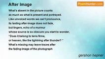 Images imagined and recalled <br />rain on the masterpoet’s mind like mist <br />that lubricates the lips that have enthralled <br />him in the past, but he has never kissed. <br /> <br />Inspired by Robert Lowell’s “Epilogue, ” cited by Thomas L. Jeffers in the October 2003 issue of Commentary: which begins: <br /> <br />Those blessed structures, plot and rhyme–– <br />why are they no help to me now <br />I want to make <br />something imagined, not recalled. <br />I hear the noise of my own voice: <br />The painter’s vision is not a lens, <br />It trembles to caress the light. <br />But sometimes everything I write <br />with the threadbare art of my eye <br />seems a snapshot, <br />lurid, rapid, garish, grouped, <br />heightened from life, <br />yet paralyzed by fact. <br />All’s misalliance. <br />Yet why not say what happened? <br />Pray for the grace of accuracy <br />Vermeer gave to the sun’s illumination <br />stealing like the tide across a map <br />to his girl solid with yearning. <br />We are poor passing facts, <br />warned by that to give <br />each figure in the photograph <br />his living name. <br /> <br />10/4/03,3/12/09<br /><br />gershon hepner<br /><br />http://www.poemhunter.com/poem/images-imagined-and-recalled/