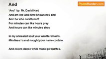 'The Mansuetude of Life' by David Hart <br /> <br />Life's mansuetude greets <br />Its caitiff guests. <br /> <br />The Clamor, then the Silence. <br /> <br />An Antaen prediliction <br />To contemn prospicience just <br />Is, alas. <br /> <br />The Serenity of Silence, <br />Then the Stentorian Ado. <br /> <br />The Sybyl's palaver, her <br />Paraclete's schwarmerei- <br />Such tsuris. <br /> <br />Is, Life just is. <br /> <br />Let's venerate analeptic <br />Serendipity. <br /> <br />The Still, then the Fracas. <br /> <br />Fractious giaours executing <br />A galvanic gavotte <br />In a paroxysm <br />Of tergiversation <br /> <br />The quell of silence before <br />The rumble. <br /> <br />Arete. Let us all dazzle with <br />Noble arete. <br /> <br />Hart2008USA <br /> <br /> <br />VOCABULARY <br />paroxysm- <br />a sudden sharp attack (of pain, rage, laughter etc): <br />ter·gi·ver·sate [tur-ji-ver-seyt] <br />–verb (used without object) , -sat·ed, -sat·ing. <br />1. to change repeatedly one's attitude or opinions <br />with respect to a cause, subject, etc. equivocate. <br />2.to turn renegade; <br />arete-the aggregate of qualities, as valor and virtue, <br />making up good character Antaen-Gr Myth-Large/gigantic; <br />giaour-Mohammad's infidels; prospicience-n. forsight; <br />schwarmerei-n. excessive, unbridled enthusiam; <br />tsuris-Yiddish-trouble, aggro, woe; analeptic- invigorating; <br />fractious-adj. cross, ugly, unruly; palaver-n. talk intended <br />to beguile; mansuetude-mildness; gentleness: <br />the mansuetude of Christian love; caitiff- 1.a base, despicable person. <br />–adjective <br />2.base; despicable.<br /><br />David Hart<br /><br />http://www.poemhunter.com/poem/the-mansuetude-of-life-by-david-hart/