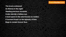 Smoothed like a gemstone <br />Now alone in the mine <br />Grey and full <br />Left to my thoughts and dreams of yesterday <br />Left to a now that is here and gone, playing hide and seek with <br />Masks and plays <br />We are what our muses allow <br />We are what carbon and water allow <br />Memory is harsh, memory is persistent and memory must die <br />Time to break the skin and emerge once again <br />Time for last blossoms <br />Encores, eternal, ephemeral, etcetera, <br />Coffee stains and notebooks <br />On this grey dawn <br />Bring chilled birdsong <br />A cardinal seeks its mate at dawn’s soft Kaddish to night <br />Lone in the bare branch, (as am I) who could have known <br />But time, that I would be where I could be and left to turn in the breeze as the last fall leaf <br />Stink bugs lie in their stink bug grave on my sill; hallowed carcass of a hollowed life <br />Left in the jungle at Mayan dawn,10 foot down with ghosts, calves and snails <br />Naked at dusk, covered in ancient dust and now a feast for gnawing bites<br /><br />Guillermo Veloso<br /><br />http://www.poemhunter.com/poem/what-carbon-and-water-allow/