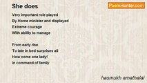 You are no more <br />Only some memory to adore <br />I wish to retain each moment <br />With silence and never to comment <br /> <br />The tall tree is witness <br />I raise my head and face <br />How elegantly it stands? <br />With grace as friend <br /> <br />How can I forget now? <br />Once it gave me cool shade <br />I am normal human being <br />There is lot more to feel and bring <br /> <br />Slight movement of leaves <br />Reminds me of her move <br />She used to come gently <br />I used to hear her steps aptly <br /> <br />She will come from behind <br />Hold my eyes with hands kind <br />It was her known move <br />She needed no words to prove <br /> <br />Even little bang on door <br />Made me to feel poor <br />As she is now not with me <br />To close it or make it free <br /> <br />I know she may be comfortable <br />Wherever she may be sans trouble <br />I miss her each second with time <br />Why had she gone away this time? <br /> <br />She used to quarrel <br />But never in bad sense to feel <br />This time she had firm determination <br />She bade good bye permanently with relation<br /><br />hasmukh amathalal<br /><br />http://www.poemhunter.com/poem/she-bade-good-bye/