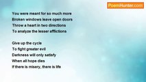Oh, This is old <br />My heart is getting cold <br />Our feet will be numb <br />This joy we must succumb <br /> <br />Oh yeah, what will be left <br />You paid my debt <br /> <br />Open your eyes, I see a new beginning <br />Open your mind, I see a new light <br />Open your soul to find out who you really are... <br /> <br />A prayer to release <br />An age-old disease <br />Will bring us to our knees <br />But only you will set us free <br /> <br />No we will we not forget <br />No we will not dwell on regret <br />Shame is failure <br />Not a reliever <br /> <br />Open your eyes, I see a new beginning <br />Open your mind, I see a new light <br />Open your soul to find out who you really are... <br /> <br />Oh, do not stray <br />For you will become afraid <br />Look past your fear <br />This is the final year for your misery <br /> <br />I've lost it I miss it <br />I want it I need it <br />I can't see <br />I can't breathe <br />I won't be<br /><br />Devon Tremblay<br /><br />http://www.poemhunter.com/poem/open-your-eyes-38/