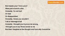 I watched falling stars hit the ground <br />I felt love that was real <br />Saying goodbye shouldn’t have happened <br />Because, perhaps, hello was wrong. <br />Writing that song was so easy <br />Now it’s in my head all day long <br />Across the skyway <br />Stars dance and play <br />But one won’t twinkle like the rest <br />Maybe it’s broken <br />Possibly dead <br />Or is suffering from something else <br />It’s much, much easier to sit and watch <br />The grass is greener <br />The air is cleaner <br />Bu you wonder if this is real? <br />Is it a lie <br />That was created on a second field <br />You only get a few people in your life <br />So you better treat them more than right <br />Fix your mistakes <br />Right your wrongs <br />Life cannot be a love song <br />Dot your i’s and cross your t’s <br />Pray you leave out nothing <br />Close your eyes… <br />Do you dream of me? <br />Gentle music only nurses the cracks <br />That are deep inside of me <br />It’ll be okay, that’s what they’re saying <br />If only I’d seen the signals <br />I sped up when I should’ve slowed down <br />Now my life is flipped upside down <br />No one to blame but myself <br />I already know that… <br />That star I mentioned, now is gone <br />I’m a little sad I can’t see it <br />Maybe it’s hiding from my eyes <br />Or maybe, like me, it has died.<br /><br />Vanessa Kingsley<br /><br />http://www.poemhunter.com/poem/stars-107/
