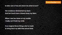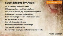 darkness fall the stars fill the sky <br />my head hits the pillow, look closely, i cry <br />slowly the tears stop flowing, stop falling <br />slipping away, i feel my dreams calling <br />undisturbed in a deep sleep again <br />thats when my dreams of an angel begin <br /> <br />light covers me from an unknown place <br />off in the distance i see a familiar face <br />my minds scattered as i rise to my knees <br />the sight of her face has put my mind at ease <br />she reaches for me or maybe i 4 her <br />at night thats when my dreams of an angel occur <br /> <br />a shock to my bones, is it electricity <br />no, her arms arond me, i'm floating, blissfully <br />lost in her eyes, or is it her perfume <br />something about her just seems to consume <br />my heart my mind my body and soul <br />its my dreams of an angel that keep me feeling whole <br /> <br />beauty beyond measure from her ears to her nose <br />seeing the light, from her it glows <br />i'm lost in a trance, i never want to wake <br />at a glance my heart this angel did take <br />unknown joy fills me from my head to my toes <br />its the dream of an angel makin me wish i hadnt rose <br /> <br />night turns to day, my dreams fade away <br />stare'n at the ceiling wishing you'd stay <br />my body feels weak an heavy, but this is life <br />back to the struggles, hurt and the strife <br />i dont know why the days are so painfull <br />all i know is at night i dream of my angel<br /><br />kyle dewey<br /><br />http://www.poemhunter.com/poem/dreams-of-an-angel/