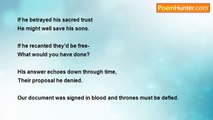 When Liberty lies bleeding <br />And the politicians laugh <br />Its poets who must rescue her <br />Or write her epitaph. <br /> <br />When Liberty lay naked, scorned <br />Upon the cobblestones <br />I gave my coat to be her robe <br />And brought her to my home <br /> <br />More dead than alive she seemed <br />I gave her tea to drink <br />She shivered at the memory <br />Of how low some people sink. <br /> <br />“My people once were proud and free” <br />She shook her head in shame. <br />“But lately they submit like slaves <br />To politician’s games” <br /> <br />“The State invades your privacy- <br />You mutely give assent. <br />What would Patrick Henry say <br />opposed to such offense? .” <br /> <br />“My treasury is plundered <br />By thieves the Banksters sent. <br />As we sink deeper into debt <br />Our Dollar’s worth three cents.” <br /> <br />“We borrow billions every day <br />To fight a faceless foe <br />Engaged in a “forever” war <br />As my strength erodes” <br /> <br />When Liberty lies bleeding <br />And the politicians laugh <br />Its poets who must rescue her <br />Or write her epitaph.<br /><br />John F. McCullagh<br /><br />http://www.poemhunter.com/poem/naked-girl/