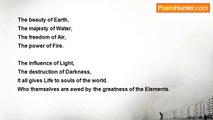 Flowing through the river, <br />Moving peacefully, <br />Throughout the Earth <br />Wherever the currents runs, <br /> <br />Water stirs freely, <br />Living as it wishes. <br />Gentle enough to float a light feather, <br />Though fierce enough to drown a large steamship <br /> <br />Water guides and protects, <br />It gives peace and tranquility <br />And nourishes life with soothing care, <br /> <br />Harmony<br /><br />Zander William Pearson<br /><br />http://www.poemhunter.com/poem/unity-part-2-water/