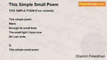 In this wide world of endless words? <br />A small metaphor of bliss <br />An aching of happiness <br />A small surrender to meaning <br />In the vast vast vastness of nothingness? <br /> <br />Where is a small poem for me <br />That will remain a poem always, <br />And not just be <br />Words and more words <br />Words and more words <br />Against a darkening and declining disappearing <br />Endless night?<br /><br />Shalom Freedman<br /><br />http://www.poemhunter.com/poem/where-is-a-small-poem-for-me/