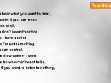 I'll be you shoulder to lean on, <br />I'll be there when you need me. <br />You can tell me anything. <br />I'll listen to you <br />When everything seems so dark <br />When nothing seem right <br />I'll be there <br />Right by your side. <br />No matter what you say, <br />No matter what you do, <br />You can tell me anything <br />I'll listen to you. <br />There were times <br />When you thought you wouldn't <br />Make it through. <br />There were choices <br />You just couldn't do. <br />I'm listenin to you. <br />You can tell me. <br />No matter what, <br />I'll be there. <br />Waiting for you. <br />You can tell me anything <br />It doesn't matter <br />What you do. <br />I'm just here for you.<br /><br />Nightshade Starlight<br /><br />http://www.poemhunter.com/poem/you-can-tell-me-2/