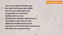 Some people like to talk about the weather <br />or what they watched the night before on T.V. <br />many go on and on about their holidays <br />while others chat about Cars or even Astrology. <br />But I like to talk about Football <br />as I've got lots of stories to share <br />like all the great players I've seen <br />and games when you just had to be there. <br />My late Father used to be just the same <br />as a child I'd take in every word he'd say <br />I'd sit and listen to him for hours and hours <br />then grab my ball and go out to play. <br />I often talk about Football in the pub <br />and even to strangers standing in a queue <br />'We won the F.A. Cup once you know, <br />beating Spurs by three goals to two.' <br />Once a Jehovah Witness knocked on my door <br />so I invited him in for a cup of tea <br />within an hour I converted him into a Football fan <br />he's now a massive supporter of Coventry City F.C. <br />My doctor reckoned I needed urgent help <br />and I saw a specialist that very day <br />but after talking to a Psychiatrist about Football <br />he now follows my team at home and away. <br />They say that talk is cheap <br />and that may very well be true <br />but I love talking about the Beautiful Game <br />because that's what I like to do!<br /><br />Kevin Halls<br /><br />http://www.poemhunter.com/poem/let-s-talk-football/