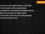 It's Her silk-fingered, soft caress <br />That touches our ever tenderness - <br />Transporting each sensation into bliss - <br />Then throws us from Her chamber.<br /><br />Jonathan Platt<br /><br />http://www.poemhunter.com/poem/ecstasy-50/