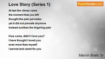 At last the climax came <br />the moment that you left <br />thought the pain pervades <br />yet it did not prevails anymore <br />instead soothes the lingering pain <br /> <br />How come, didn't I love you? <br />I have thought I loved you <br />even more than myself <br />I served and cared for you <br />though you didn't reciprocate <br /> <br />Despite what I did for you <br />you continued to make demands <br />for the things I am not capable of <br />pleasures of bits and pieces <br />which I am not blessed with <br /> <br />You are near yet so far <br />as we slept beside each other <br />but I never felt the warmth <br />as you were frigid at my touch<br /><br />Marvin Brato Sr<br /><br />http://www.poemhunter.com/poem/the-pain-that-doesn-t-hurt-anymore-series-1/