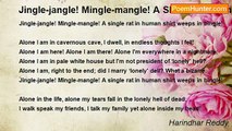 I’m surrounded by many, yet isolated and alone, <br />I tried to reach out to the people with just and fair …….. <br />But succeeded in taking hold of empty dust in the air; <br />I’m a broken heart in utter despair of being alone! <br />Mingle-mangle, jingle-jangle! A lone squirrel hides in the dingle! <br /> <br />I am fed of living everyday – a sick rose, <br />It's library routine for my dreams turning into gray – a grey rose; <br />I am fed of dying every way – a faded rose, <br />Dawn to dusk, I'm being tortured by loneliness' husk – a blue rose! <br />Mingle-mangle, jingle-jangle! A lone squirrel hides in the dingle! <br /> <br />Loneliness pulled wool over my eyes, I – a woolgatherer! <br />Loneliness pulled rug over my creativity, I and it stay together; <br />Day after day always putting on a happy face - outside, <br />While I'm butchered by aching numbness - inside. <br />Mingle-mangle, jingle-jangle! A lone squirrel hides in the dingle! <br /> <br />A mask of plastic happiness often covers my tear and fear, <br />In my husk a silent flame burns perennially with a hiccup; <br />I act with all, day by day in the sale, playing roles without any make-up, <br />Yikes! One day there will be no more mask for me to wear. <br />Mingle-mangle, jingle-jangle! A lone squirrel hides in the dingle! <br /> <br />My life is moving slowly like a tortoise as loneliness appears, <br />I'm lonely as I watch the world passing and crossing through my way, <br />One midnight, loneliness dressed in blue lurked in my doorway, <br />ONE DAY this mask will be NO MORE, if only loneliness disappears! <br />Mingle-mangle, jingle-jangle! A lone squirrel hides in the dingle!<br /><br />Harindhar Reddy<br /><br />http://www.poemhunter.com/poem/mingle-mangle-jingle-jangle-a-lone-squirrel-hides-in-the-dingle/
