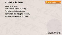 I believe in finite trend <br />all we do is comprehend <br />that things could not last <br />become memory of the past. <br /> <br />I believe in romance <br />it marks zestful stance <br />love is sentimental fact <br />as long as lovers are intact. <br /> <br />I believe in family bonding <br />it creates better understanding <br />when problems invade the home <br />everybody calls in from the phone. <br /> <br />I believe in salvation <br />Jesus gave redemption <br />our sins are long forgiven <br />soon we shall be in heaven.<br /><br />Marvin Brato Sr<br /><br />http://www.poemhunter.com/poem/i-believe-84/