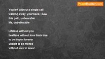 When our lips meet <br />its just you and me <br />with Our lives together <br />hopefully forever..... <br /> <br />Foolishingly for me to say <br />that, That day <br />will never be able to <br />come our way.... <br /> <br />Because of the mistakes i've made <br />not wanting my love to fade <br />i look at other guys and say <br />DDAAMMNN! <br /> <br />Not thinking what could happen <br />what pain i can cause <br />until... that moment that i saw <br />you leaving me <br /> <br />Deep inside i know its my fault <br />i know this pain that love gives <br />i've had it far too long for me to live <br />im sorry my love... but i know its too late<br /><br />Bellaina Bella Hernandez<br /><br />http://www.poemhunter.com/poem/pain-of-love-20/