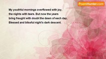 This morning <br />on the train <br />a mouth so <br />troublingly wide <br />and eyes, in a flash, <br />there and gone; <br />that looked into mine <br />like flesh from flesh, <br />asunder torn, there <br />and gone<br /><br />Morgan Michaels<br /><br />http://www.poemhunter.com/poem/this-morning-34/