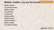 To realize the dream I am here. <br /> <br />Link and language is my hard work <br />I have to see how better and better they are. <br /> <br />If but etc etc have nothing to do <br />In the light in the dark I decided to move. <br /> <br />The word mother is my own my health and my wealth <br />My past present and future and I dwell to speak in length. <br /> <br />Mother O mother my sweet mother lovely mother you are my dream <br />I come from you I am for you I love all good and all cream. <br /> <br />What I have today O my scented mother is given by you <br />Nurtured by you, nothing is there on this earth besides you.<br /><br />gajanan mishra<br /><br />http://www.poemhunter.com/poem/dream-is-there-in-my-mother/