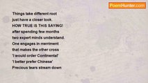 When eyes do all the talking alone <br />Lips need not stir or move any longer <br />Fumes of pain singe rise and groan <br />Almost a stranger suddenly grows fonder <br /> <br />Strings of restrain start flying high <br />Friend, who can control the race of mind? <br />Speech pauses and closer brushes sigh <br />Who could- my peace – can see and find? <br /> <br />In one dim corner of the heart housed <br />A clutch- a fold- a cut – a song- a pounce <br />For never had such emotions abused <br />me, so much as this titillating ounce.<br /><br />Soumita Sarkar Ray<br /><br />http://www.poemhunter.com/poem/beginning-of-love-4/