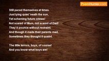 When four bear cubs were granted space <br />To stroll along one day, <br />There was no sudden sad disgrace <br />Because they chose to play... <br />Thus side-by-side without a brawl, <br />Just like four musketeers, <br />With all-for-one and one-for-all <br />They each shared smiles not fears... <br /> <br />Of course, they'd bonded like bears do, <br />Each knew there was no harm, <br />They faced that morning rendezvous <br />With no trace of alarm... <br />Thus peace was reigning, kingdom-wise, <br />With gentle harmony <br />And surely that's the greatest prize <br />That's ever meant to be... <br /> <br />If only humans chose this path, <br />Aspired to its aims, <br />There'd be more reasons still to laugh, <br />Less reasons to call names... <br />Yet love takes time in every heart <br />To blossom like the rose, <br />Before its blessings can impart <br />And lifelong friendship grows...<br /><br />Denis Martindale<br /><br />http://www.poemhunter.com/poem/peaceable-kingdom/