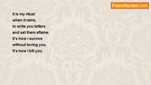 I lift my hand <br />and point a finger <br />at your chest. <br /> <br />I shoot and you fall. <br />Spilled on my shoes, <br />you sparkle. <br /> <br />I lean to see your lips. <br />The damn smile <br />is still there.<br /><br />Junkyard Of Muses<br /><br />http://www.poemhunter.com/poem/the-smile-29/
