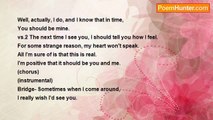 What should you do when <br />you come across a snake? <br />I should make sure that <br />there's a few risks to take. <br /> <br />What would you do when <br />you get stuck in a pickle? <br />I would eat around it, <br />and later eat a popsicle. <br /> <br />What can you do when <br />you like to draw too much? <br />I can see my future as an <br />artist and such and such. <br /> <br />What have you done when <br />you have made up your mind? <br />I have made an important <br />decision in my life. <br /> <br />What will you do when <br />you see that this is odd? <br />I will see that my name <br />is clearly 'in a pod.' <br /> <br />What should you do when <br />you know what to do? <br />I should say 'Goodbye, ' <br />because now, I'm through!<br /><br />Rebecca Ryan<br /><br />http://www.poemhunter.com/poem/what-should-you-do-when/