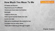 Recently I told you how I feel, <br />You told me it was no big deal. <br />I can't help but think you're wrong. <br />This all reminds me of a sad song. <br /> <br />I trust you, believe me, <br />I just have too much insecurity. <br />Yesterday, I didn't talk to you. <br />And that's what I looked forward to. <br /> <br />I thought that things were awkward, <br />And that's why you didn't say a word. <br />Then I remembered what you said, <br />The words go over in my head. <br /> <br />I needed to know why you weren't on, <br />By nine o'clock, all hope was gone. <br />Eleven and a half hours I waited, <br />Then this poem was created. <br /> <br />I need you more than anything now, <br />Because without you, there's no wow. <br />You mean everything to me. <br />This is something you couldn't see.<br /><br />kayla martinez<br /><br />http://www.poemhunter.com/poem/you-mean-everything-to-me/