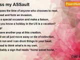 Quarter to Blyth, <br />It’s loud and live, <br />It warms up the blood deep inside, <br />It’s not a place, <br />It’s a time, <br />When the clock strikes to the beat I’m feeling fine. <br /> <br />I’m either single and looking, <br />Or single and lonely, <br />Single and loving it, <br />Oh time it holds me, <br />Peel off my wrapper and unfold me, <br />It’s time for my story, <br />So listen up closely. <br /> <br />Don’t ever send a boy to do a blokes job, <br />Your having a laugh mate, <br />Don’t ever send a boy to do a blokes job, <br />Your pulling my leg mate. <br /> <br />This aint a test, <br />It’s lives best, <br />It’s a feeling that’s easy to digest, <br />Its not a downer, <br />Its successful, <br />A time to be at when your feeling stressful. <br /> <br />Is that aftershave for the ladies? <br />Or is that for the lads, <br />Another drunken slideshow on YouTube, <br />Boobtubes are a most horrible fad, <br />Don’t ever send a boy to do a blokes job, <br />You’re having a laugh man, <br />Yeah don’t ever send a boy to a time that’s mine, <br />Quarter to Blyth.<br /><br />Gaz illionaire<br /><br />http://www.poemhunter.com/poem/quarter2blyth/