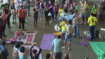 Un centenar de manifestantes protestaron en Brasilia el jueves contra la homofobia y el machismo, tanto dentro como fuera del terreno de juego durante el Mundial de Fútbol.