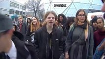 Actor Shia LaBeouf is making headlines again, and it's not for the paper bag he famously wore on this head.<br/> <br />The "Transformers" star was arrested Thursday night inside New York's Studio 54 theater during a performance of "Cabaret."<br/> <br />The disheveled actor was seen leaving a Manhattan courtroom Friday morning after his arraignment.<br/> <br />The 28-year-old was charged with several counts of disorderly conduct, harassment and trespassing.<br/> <br />Witnesses say LaBeouf was disturbing Friday night's performance, using obscene language, smoking in the theater, and refusing to stop.<br/> <br />He was escorted out during intermission, and that's when police say he became belligerent and officers had to be called in.<br/> <br />Two theater-goers told local media they saw LaBeouf stumbling inside the theater bar with a torn shirt and behaving bizarrely.<br/> <br />SOUNDBITE: WITNESS TINA MARIE MILLER SAYING:<br/> <br />"Honestly, I wasn't thinking of drunk or drugs. I was thinking he was working on a role, beca