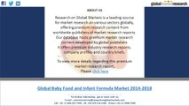 http://www.bigmarketresearch.com/global-baby-food-and-infant-formula-2014-2018-market <br />Infant formula is either a partial or a total substitute for breast milk for infants under one year old. Baby food products, available in the market, are specially designed to meet nutritional needs of babies less than three years of age. <br />This report includes the market segmentation based on the types of baby food and infant formulas. In addition, it discusses the major drivers that influence the growth of the market. It also outlines the challenges faced by the vendors and the market at large, and the key trends emerging in the market. <br />TechNavio's analysts forecast the Global Baby Food and Infant Formula market by revenue will grow at a CAGR of 7.5 percent over the period 2014-2018. <br /> <br />Browse Similar Report: Global Point of Care Diagnostics Market http://www.bigmarketresearch.com/point-of-care-diagnostics-market