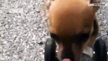 A Chihuahua born without his front legs is learning to walk using a wheelchair made from toy parts. Jen Markham has the adorable video.