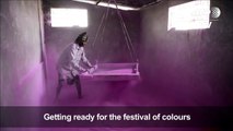 Group of children mixing coloured powder in a tub filled with water to mark the celebration of Holi by spraying coloured water to one another in Jodhpur.<br /><br />Holi is a spring festival also known as the festival of colours or the festival of love. It is an ancient Hindu religious festival which has become popular with non-Hindus in many parts of South Asia, as well as people of other communities outside Asia.<br /><br />It is primarily observed in India, Nepal, and other regions of the world with significant populations of Hindus or people of Indian origin. The festival has, in recent times, spread to parts of Europe and North America as a spring celebration of love, frolic, and colours.<br /><br />Holi celebrations start with a Holika bonfire on the night before Holi where people gather, sing and dance. The next morning is a free-for-all carnival of colours, where participants play, chase and colour each other with dry powder and coloured water, with some carrying water guns and coloured water-filled balloons for their water fight. Anyone and everyone is fair game, friend or stranger, rich or poor, man or woman, children and elders. The frolic and fight with colours occurs in the open streets, open parks, outside temples and buildings. Groups carry drums and musical instruments, go from place to place, sing and dance. People move and visit family, friends and foes, first play with colours on each other, laugh and chit-chat, then share Holi delicacies, food and drinks. Some drinks are intoxicating. For example, Bhang, an intoxicating ingredient made from cannabis leaves, is mixed into drinks and sweets and consumed by many. In the evening, after sobering up, people dress up, visit friends and family.<br /><br />Holi is celebrated at the approach of vernal equinox, on the Phalguna Purnima (Full Moon). The festival date varies every year, per the Hindu calendar, and typically comes in March, sometimes February in the Gregorian Calendar. The festival signifies the victory of good over evil, the arrival of spring, end of winter, and for many a festive day to meet others, play and laugh, forget and forgive, and repair ruptured relationships.<br /><br />Source: Wikipedia<br /><br />This footage is part of the professionally-shot broadcast stock footage archive of Wilderness Films India Ltd., the largest collection of HD imagery from South Asia. The Wilderness Films India collection comprises of 50, 000+ hours of high quality broadcast imagery, mostly shot on HDCAM / SR 1080i High Definition, Alexa, SR, HDV and XDCAM. Write to us for licensing this footage on a broadcast format, for use in your production! We are happy to be commissioned to film for you or else provide you with broadcast crewing and production solutions across South Asia. We pride ourselves in bringing the best of India and South Asia to the world... <br /><br />Please subscribe to our channel wildfilmsindia on Youtube for a steady stream of videos from across India. Also, visit and enjoy your journey across India at www.clipahoy.com , India's first video-based social networking experience!<br /><br />Reach us at rupindang @ gmail . com and admin@wildfilmsindia.com
