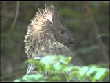 A lone Crested Hawk Eagle sits by Ken River and drinks water from it in Panna National Park, Madhya Pradesh, India.<br /><br />The Changeable Hawk-Eagle or Crested Hawk-Eagle (Nisaetus cirrhatus) is a bird of prey species of the family Accipitridae. It was formerly placed in the genus Spizaetus, but studies pointed to the group being paraphyletic resulting in the Old World members being placed in Nisaetus (Hodgson, 1836) and separated from the New World species.<br /><br />Changeable Hawk-Eagles breed in the Indian Subcontinent, mainly in India and Sri Lanka, and from the southeast rim of the Himalaya across Southeast Asia to Indonesia and the Philippines. This is a bird occurring singly (outside mating season) in open woodland, although island forms prefer a higher tree density. It builds a stick nest in a tree and lays a single egg.<br /><br />The Changeable Hawk-Eagle is a medium-large raptor at about 60--72 centimetres (24--28 in) in length with a 127--138 centimetres (50--54 in) wingspan, and a weight ranging from 1.2 to 1.9 kg. It is a relatively slender forest eagle with some subspecies (especially limnaetus) being dimorphic giving the name of "Changeable". This, and also a complicated phylogeny further complicates precise identification.<br /><br />Normally brown above; white below with barring on the undersides of the flight feathers and tail; black longitudinal streaks on throat and chocolate streaks on breast. Some subspecies have a crest of four feathers, but this is all but absent in others. The sexes are quite similar in their plumage, but males are about 15% smaller than females. The underparts and head of juveniles are whitish or buff with few dark streaks.<br /><br />The wings are long and parallel-sided, and are held flat in flight, which helps to distinguish this species from the similar Mountain Hawk-Eagle. In overhead flight, comparatively rounded wings (upturned at tip), longish tail, white body (spotted with brown) and grey underside of wings (streaked and spotted) are leading pointers. Call is a loud, high-pitched ki-ki-ki-ki-ki-ki-ki-ki-kee, beginning short, rising in crescendo and ending in a scream.<br /><br />Source : WIkipedia<br /><br />This footage is part of the professionally-shot broadcast stock footage archive of Wilderness Films India Ltd., the largest collection of HD imagery from South Asia. The Wilderness Films India collection comprises of 50, 000+ hours of high quality broadcast imagery, mostly shot on HDCAM / SR 1080i High Definition, Alexa, SR, HDV and XDCAM. Write to us for licensing this footage on a broadcast format, for use in your production! We are happy to be commissioned to film for you or else provide you with broadcast crewing and production solutions across South Asia. We pride ourselves in bringing the best of India and South Asia to the world... <br /><br />Please subscribe to our channel wildfilmsindia on Youtube for a steady stream of videos from across India. Also, visit and enjoy your journey across India at www.clipahoy.com , India's first video-based social networking experience!<br /><br />Reach us at rupindang @ gmail . com and admin@wildfilmsindia.com