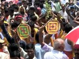 Hindu devotees carry the idol of Lord Jagannath for the Rath Yatra or chariot procession in Delhi.<br /><br />A Ratha-Yatra or Roth Jatra or Chariot Festival is a Hindu festival that involves transporting deities on a chariot (called a ratha or roth). "Ratha" in Oriya means chariot and "yatra" means journey. The festival thus refers to the annual journey of the divinity in the form of idols to their aunt's house. "Aunt" here refers to the feminine creative aspect of divinity. <br /><br />The Jagannath triad are usually worshiped in the sanctum of the temple at Puri, but once during the month of Asadha (Rainy Season of Orissa, usually falling in month of June or July), they are brought out onto the Bada Danda (main street of Puri) and travel (3 km) to the Shri Gundicha Temple, in huge chariots (ratha), allowing the public to have darśana (Holy view). This festival is known as Rath Yatra, meaning the journey (yatra) of the chariots (ratha). The Rathas are huge wheeled wooden structures, which are built anew every year and are pulled by the devotees. The chariot for Jagannath is approximately 45 feet high and 35 feet square and takes about 2 months to construct . The artists and painters of Puri decorate the cars and paint flower petals and other designs on the wheels, the wood-carved charioteer and horses, and the inverted lotuses on the wall behind the throne. The huge chariots of Jagannath pulled during Rath Yatra is the etymological origin of the English word Juggernaut.The Ratha-Yatra is also termed as the Shri Gundicha yatra.<br /><br />Source: Wikipedia<br /><br />This footage is part of the professionally-shot broadcast stock footage archive of Wilderness Films India Ltd., the largest collection of HD imagery from South Asia. The Wilderness Films India collection comprises of tens of thousands of hours of high quality broadcast imagery, mostly shot on HDCAM / SR 1080i High Definition, Alexa, SR, HDV and XDCAM. Write to us for licensing this footage on a broadcast format, for use in your production! We are happy to be commissioned to film for you or else provide you with broadcast crewing and production solutions across South Asia. We pride ourselves in bringing the best of India and South Asia to the world... Reach us at rupindang @ gmail . com and admin@wildfilmsindia.com.