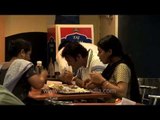 Indian workers dine at the canteen/cafeteria of the Hero ITES call center in Gurgaon, Haryana, India. The Business Process Outsourcing (BPO) revolution seems to have now by-passed India and moved to countries such as Philippines. Cities such as Hyderabad, Bangalore, Pune and Gurgaon were the first to benefit from the influx of outsource work from the west, into India, where labour and facilities were less expensive.<br /><br />Business Process Outsourcing (BPO) team members attend to calls and work-flows for European and American clients out of their Gurgaon call center / centre.<br /><br />A Business Process Outsourcing in Gurgaon, Haryana.<br /><br />Business process outsourcing (BPO) is a subset of outsourcing that involves the contracting of the operations and responsibilities of specific business functions (or processes) to a third-party service provider.<br /><br />This footage is part of the professionally-shot broadcast stock footage archive of Wilderness Films India Ltd., the largest collection of HD imagery from South Asia. The Wilderness Films India collection comprises of tens of thousands of hours of high quality broadcast imagery, mostly shot on HDCAM / SR 1080i High Definition, Alexa, SR, HDV and XDCAM. Write to us for licensing this footage on a broadcast format, for use in your production! We are happy to be commissioned to film for you or else provide you with broadcast crewing and production solutions across South Asia. We pride ourselves in bringing the best of India and South Asia to the world... Reach us at rupindang @ gmail . com and admin@wildfilmsindia.com.