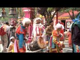 Bagpipers band taking part at the procession during the auspicious celebration of Nanda Devi Fair in remembrance of the goddesses Nanda and Sunanda in Nainital.<br /><br />The Nandadevi fair is held at Almora, Nainital, Kot (Dangoli), Ranikhet, Bhowali, Kichha and also in the far flung villages of lohar (like Milam and Martoli) and Pindar valleys (like Wachham and Khati). In the villages of the Pindar valley people celebrate the Nanda Devi Jaat (journey) every year, while in lohar people come from far and wide to Danadhar, Suring, Milam and Martoli in order to worship the Goddess. In Nainital and Almora thousands take part in the procession carrying the dola (or litter) of Nanda Devi. It is said that the Nanda Devi fairs started in Kumaon during the reign of Kalyan Chand in the 16th Century. A three day fair is held at Kot ki mai or Kot bhramari devi. The fair at Saneti comes every second year. Both these fairs are rich in folk expressions and many village products are brought for sale.<br /><br />www.euttaranchal.com/culture/fairs_festivals/nandadevi.php<br /><br />This footage is part of the professionally-shot broadcast stock footage archive of Wilderness Films India Ltd., the largest collection of HD imagery from South Asia. The Wilderness Films India collection comprises of tens of thousands of hours of high quality broadcast imagery, mostly shot on HDCAM / SR 1080i High Definition, Alexa, SR, HDV and XDCAM. Write to us for licensing this footage on a broadcast format, for use in your production! We are happy to be commissioned to film for you or else provide you with broadcast crewing and production solutions across South Asia. We pride ourselves in bringing the best of India and South Asia to the world... Reach us at rupindang @ gmail . com and admin@wildfilmsindia.com.
