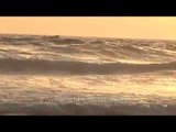 Boat riding the waves in Kanyakumari, India.<br /><br />Kerala regionally referred to as Keralam, is a state in the south-west region of India on the Malabar coast. It was formed on 1 November 1956 as per the States Reorganisation Act by combining various Malayalam-speaking regions. Spread over 38,863 km2 (15,005 sq mi) it is bordered by Karnataka to the north and north east, Tamil Nadu to the east and south, and the Lakshadweep Sea to the west. With 33,387,677 inhabitants as per the 2011 census, Kerala is the twelfth largest state by population and is divided into 14 districts. Malayalam is the most widely spoken and official language of the state. The state capital is Thiruvananthapuram, other major cities include Kochi, Kozhikode, Thrissur, and Kollam.<br /><br />Indian Railways is an Indian state-owned enterprise, owned and operated by the Government of India through the Ministry of Railways. It is one of the world's largest railway networks comprising 115,000 km (71,000 mi) of track over a route of 65,000 km (40,000 mi) and 7,500 stations. In 2011, IR carried over 8,900 million passengers annually or more than 24 million passengers daily (roughly half of which were suburban passengers) and 2.8 million tons of freight daily. In 2011--2012 Indian Railways had revenues of INR1119848.9 million (US$19 billion) which consists of INR696759.7 million (US$12 billion) from freight and INR286455.2 million (US$4.8 billion) from passengers tickets.<br /><br />Railways were first introduced to India in 1853 from Bombay to Thane. In 1951 the systems were nationalised as one unit, the Indian Railways, becoming one of the largest networks in the world. IR operates both long distance and suburban rail systems on a multi-gauge network of broad, metre and narrow gauges. It also owns locomotive and coach production facilities at several places in India and are assigned codes identifying their gauge, kind of power and type of operation. Its operations cover twenty eight states and seven union territories and also provides limited international services to Nepal, Bangladesh and Pakistan.<br /><br />Indian Railways is the world's ninth largest commercial or utility employer, by number of employees, with over 1.4 million employees. As for rolling stock, IR holds over 239,281 Freight Wagons, 59,713 Passenger Coaches and 9,549 Locomotives (43 steam, 5,197 diesel and 4,309 electric locomotives). The trains have a 5 digit numbering system as the Indian Railways runs about 10,000 trains daily. As of 31 March 2013, 23,541 km (14,628 mi) (36%) of the total 65,000 km (40,000 mi) route length was electrified. Since 1960, almost all electrified sections on IR use 25,000 Volt AC traction through overhead centenary delivery.<br /><br /><br />Source :- Wikipedia<br /><br /><br />This footage is part of the professionally-shot broadcast stock footage archive of Wilderness Films India Ltd., the largest collection of HD imagery from South Asia. The Wilderness Films India collection comprises of tens of thousands of hours of high quality broadcast imagery, mostly shot on HDCAM / SR 1080i High Definition, Alexa, SR, HDV and XDCAM. Write to us for licensing this footage on a broadcast format, for use in your production! We are happy to be commissioned to film for you or else provide you with broadcast crewing and production solutions across South Asia. We pride ourselves in bringing the best of India and South Asia to the world... Reach us at rupindang @ gmail . com and admin@wildfilmsindia.com.