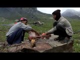 Saussurea obvallata is a species of flowering plant native to the Himalayas and Uttarakhand, India, Northern Burma and South-West China. In Himalayas, it is found at an altitude of around 4500 m. It is the state flower of Uttarakhand. Saussurea obvallata is a Perennial growing to 0.3 m (1 ft). The flowers are hermaphrodite (have both male and female organs) and are pollinated by Insects. Local name of this flowers is Brahmakamal, Kon and Kapfu. <br /><br />In Hindu drawings Brahma is seen sitting on a pink flower that is resembling lotus (Sanskrit : Kamal), which is Indian National flower. Hence people claim that the pink flower of Nelumbo nucifera to be Brahma Kamal. However others claim the flower on which he is sitting on, which resembles lotus is sprouted from belly button of Lord Vishnu. The flower which Bramha is holding in one of his four hands, a white flower resembling Saussurea obvallata is Bramha Kamal. There are people who claim that flower of Epiphyllum oxypetalum (Orchid Cactus), which blooms at night, to be Brahma kamal. Some North Indians claim that the flower of Saussurea obvallata to be Brmaha Kamal.<br /><br />Source - Wikipedia<br /><br />Saussurea obvallata, also known as Brahma Kamal, is a species of flowering plant named after Brahma, the Hindu god of creation. It is native to the Himalayas, India, Northern Burma and South-West China. In Himalayas, it is found at an altitude of around 4500 m. <br /><br />This footage is part of the professionally-shot broadcast stock footage archive of Wilderness Films India Ltd., the largest collection of HD imagery from South Asia. The Wilderness Films India collection comprises of tens of thousands of hours of high quality broadcast imagery, mostly shot on HDCAM 1080i High Definition, HDV and XDCAM. Write to us for licensing this footage on a broadcast format, for use in your production! We are happy to be commissioned to film for you or else provide you with broadcast crewing and production solutions across South Asia. We pride ourselves in bringing the best of India and South Asia to the world... Reach us at wfi @ vsnl.com and admin@wildfilmsindia.com.