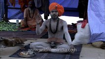 A pair of Naga Sadhus perform the penis trick at the Maha Kumbh Mela. <br /><br />Strict warning: Don't try this at home!<br /><br />While one naga sadhu wraps his penis around a sharp sword, the other sadhu climbs atop the first naga sadhu's back and then stands atop the sword, his full weight being borne by the penis of the first naga sadhu, even as he has it wrapped around the sword itself...<br /><br />Only in India! Har har mahadev...<br /><br />The man invites an audience in, to witness the spectacle and perform for them! He blesses them and accepts offerings. Meanwhile, the Ganges river flows peacefully by, in the background, behind their tent...<br /><br />Maha Kumbh has a mesmerizing influence over the minds of Indians as it is witness to the largest human gathering in history for the same cause on a single day irrespective of any worldy barriers of caste, creed, colour and religion. It is once in a lifetime experience seeing millions of pilgrims and tourists from all over the world come together for a common goal-this spectacle of Faith is truly unforgettable.<br /><br />This festival is held in highest regard as the ritual bath in the sacred water on this day saturated with flower & incense fragrance amidst chanting of vedic hymns and mantras liberates one from all suffering and miseries of life . The Kumbh Mela considered the most sacred and greatest of India's festivals where the ceremonial dip in the Holy river is an important ritual. It is believed that bathing on the auspicious days cleanses one of all sins and attains Moksha (meaning liberation from the cycle of life, Death and Rebirth).<br /><br />Source: www.up-tourism.com/mahakumbh.htm<br /><br />This footage is part of our professionally-shot broadcast stock footage archive, the largest collection of HD imagery from South Asia. Our collection comprises of tens of thousands of hours of high quality broadcast imagery, mostly shot on HDCAM 1080i High Definition, HDV and XDCAM. Write to us for licensing this footage on a broadcast format, for use in your production! We are happy to be commissioned to film for you or else provide you with broadcast crewing and production solutions across South Asia. We pride ourselves in bringing the best of India and South Asia to the world... Reach us at wfi @ vsnl . com and wfil @ vsnl . net<br /><br />Naga Sadhus at Juna Akhara, Varanasi during Maha Kumbh