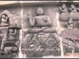 Shanti Stupa of Dhauligiri is also known as the Peace Pagda. Dhauligiri lies at a distance of 7 Km from Bhubaneswar. As one travels from Bhubaneswar to Puri, one finds Shanti Stupa. The word 'shanti' in the name itself suggests peace. Since King Ashoka adopted the path of peace and tranquility and resorted to Buddhism, he laid the foundation of Dhauligiri Shanti Stupa at a place which is known for the end of Kalinga War. Here, one finds the edict of Lord Budddha which is visited by numerous Buddhist devotees.<br />The construction of Shanti Stupa of Dhauligiri was assisted by Fuji Guruji and therefore, the place became the place of devotion and worship for various people belonging to different generations. One can also spot a number of stupas, chaityas as well as pillars whose foundation was laid by King Ashoka. There also exist a number of edicts that display King Ashoka's intention to promote joy, peace and contentment all through the world. And over the edicts, you come across a rock cut elephant that is considered to be the earliest Buddhist sculpture in Orissa.<br />The overall structure of the stupa is in the shape of a dome. One can spot the Buddha footprints as well as the Bodhi tree over the stone panels. Over the panels, one also spots the image of Ashoka who keeps his sword of war in front of Lord Buddha suggesting that he had given up the idea of war completely. In the vicinity of this stupa, there lays a monastery named as the Saddharma Vihar Monastery, which is much visited by the Buddhist devotees. And at a short distance from the Shanti Stupa, you find the temple of Dhavaleshwar that was renovated in the year 1972 and is much frequented by Hindu as well as Buddhist devotees. Therefore, do make it a point to visit Dhauligiri and explore various Buddhist attractions that add to the sacred significance of Dhauligiri in Orissa.<br /><br />Source :http://www.dhauli.net/shanti-stupa-dhauligiri.html<br /><br />This footage is part of the professionally-shot broadcast stock footage archive of Wilderness Films India Ltd., the largest collection of HD imagery from South Asia. The Wilderness Films India collection comprises of tens of thousands of hours of high quality broadcast imagery, mostly shot on HDCAM 1080i High Definition, HDV and XDCAM. Write to us for licensing this footage on a broadcast format, for use in your production! We are happy to be commissioned to film for you or else provide you with broadcast crewing and production solutions across South Asia. We pride ourselves in bringing the best of India and South Asia to the world... Reach us at wfi @ vsnl.com and admin@wildfilmsindia.com.