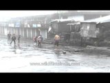 When it rains, it pours. Buildings, markets, cars, trucks, people. All get drenched and washed clean. Life slows down in the sleepy town of Cherrapunji when it rains. But for the children and working people, it is business as usual with a colourful umbrella.<br /><br />Cheerapunji also called Sohra, Cherrapunjee and Charrapunji, is a town in East Khasi Hills district in the Indian state of Meghalaya. It is credited as being the wettest place on Earth. However, nearby Mawsynram has more rainfall nowadays, and both are surpassed by Lloró, Colombia. Today, climatic changes have edged Cherrapunji out of the topmost 'wet' slot, but it still retains its pristine beauty, its unusual facets, the perpetual clouds, and the perpetual mists. Appropriately, Cherrapunji lies in the heart of the State of Meghalaya-the abode of clouds. It is the traditional capital of a hima which is a Khasi tribal chieftainship constituting a petty state known as Sohra or Churra. High above misty valleys and foaming rivers, ensconced in swirling clouds and perched on an escarpment, lies Cherrapunji (4,500 feet). <br /><br />Cherrapunji receives rains from the Bay of Bengal arm of the Indian summer monsoon. The monsoon clouds fly unhindered over the plains of Bangladesh for about 400 km. Thereafter, they hit the Khasi Hills which rise abruptly from the plains to a height of about 1370 m above mean sea level within 2 to 5 km. The winds push the rain clouds through these gorges and up the steep slopes. The rapid ascent of the clouds into the upper atmosphere hastens the cooling and helps vapours to condense. Most of Cherrapunji's rain is the result of air being lifted as a large body of water vapour. The extreme amount of rainfall at Cherrapunji is perhaps the best-known feature of orographic rain in northeast India.<br /><br />The home of enterprising Khasi clans, Cherrapunji's place in the Guinness Book of Records is not its only claim to fame. Along with falls lesser in height but no less alluring, the spectacular, cascading 1,035-ft-high Mawsmai Falls-the fourth highest in India-lie just a few kilometers beyond Cherrapunji. Close by is situated a fascinating labyrinth of underground passages beneath age-old caves-a veritable dream for amateur explorers. Elsewhere around Cherrapunji, Khasi monoliths (stones in memory of their ancestors) lie dotted around-a vague reminder of the forests of Bastar. Cherrapunji has several comfortable private hotels. Staying at the Circuit House and the Dak Bungalow require prior permission from the administration. Cherrapunji is 58 km from Shillong, the capital of Meghalaya. A steep motorable road, almost perpetually bathed in mist as it climbs upwards on the last lap, leads up to Cherrapunji. Buses and taxis ply to Cherrapunji from Shillong. <br /><br />Source: wikipedia.org & http://www.tourism-of-india.com<br /><br />This footage is part of the professionally-shot broadcast stock footage archive of Wilderness Films India Ltd., the largest collection of HD imagery from South Asia. The Wilderness Films India collection comprises of tens of thousands of hours of high quality broadcast imagery, mostly shot on HDCAM 1080i High Definition, HDV and XDCAM. Write to us for licensing this footage on a broadcast format, for use in your production! We are happy to be commissioned to film for you or else provide you with broadcast crewing and production solutions across South Asia. We pride ourselves in bringing the best of India and South Asia to the world... Reach us at wfi @ vsnl.com and admin@wildfilmsindia.com.