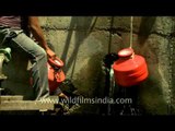 Manegaon Village not connected to proper water supply network.<br /><br />Manegaon is a village and Gram panchayat in Jalgaon Jamod tehsil of Buldhana of Maharashtra. Situated on the right bank of river Purna, it serves as a gateway to Jalgaon Jamod tehsil as one travels from State Highway 196 from Nandura to Jalgaon Jamod. Its location attached to a state highway makes it an important place for other villages in vicinity for transportation to other places. From the British Raj to the recent past, it was popularly known as 8th mile, as it was situated at a distance of eight miles from both Nandura and Jalgaon Jamod.<br /><br />Manegaon is a small village having a population of 793 individuals by census 2001. Agriculture is the main occupation of people; however, some brick-making plants on the bakns of river Purna and some kiosks on the state highway helps the economy a bit.<br /><br />As of 1976 Gazette, Manegaon has around 2262 Arces of agriculture land and 214 <br />agriculturist in 105 houses. Nandura is nearby railway station and Asalgaon is nearby weekly bazar held on Tuesday. There is a primary School, a temple, a libaray and Cooperative Society. Khandvi, a village 3 km from Manegaon, has been the post office for Manegaon.<br /><br />Source: Wikipedia<br /><br />This footage is part of the professionally-shot broadcast stock footage archive of Wilderness Films India Ltd., the largest collection of HD imagery from South Asia. The Wilderness Films India collection comprises of tens of thousands of hours of high quality broadcast imagery, mostly shot on HDCAM 1080i High Definition, HDV and XDCAM. Write to us for licensing this footage on a broadcast format, for use in your production! We are happy to be commissioned to film for you or else provide you with broadcast crewing and production solutions across South Asia. We pride ourselves in bringing the best of India and South Asia to the world... Reach us at wfi @ vsnl.com and admin@wildfilmsindia.com.